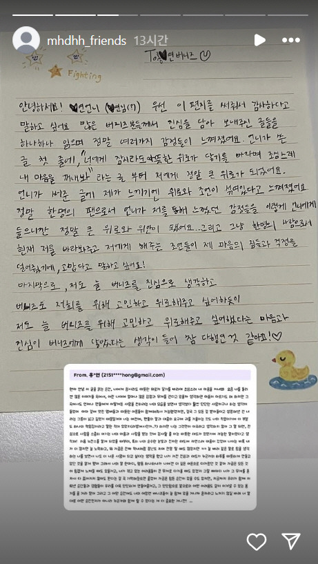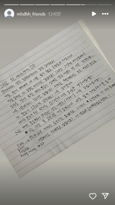 혜인이 팬들에게 보낸 손편지 내용 ✉️