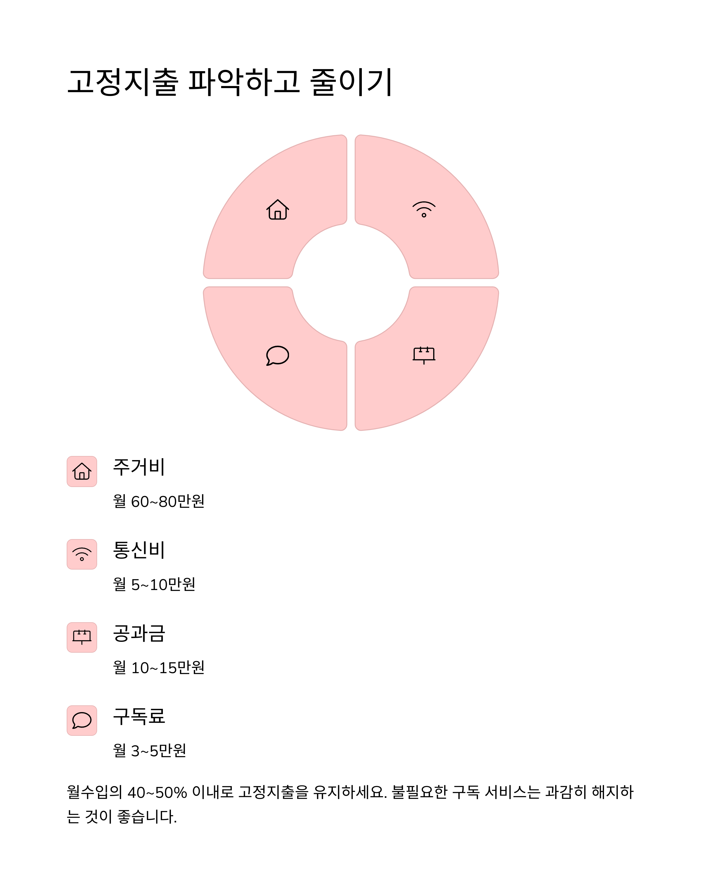 | 월세/관리비 | 매월 고정으로 나가는 비용 |