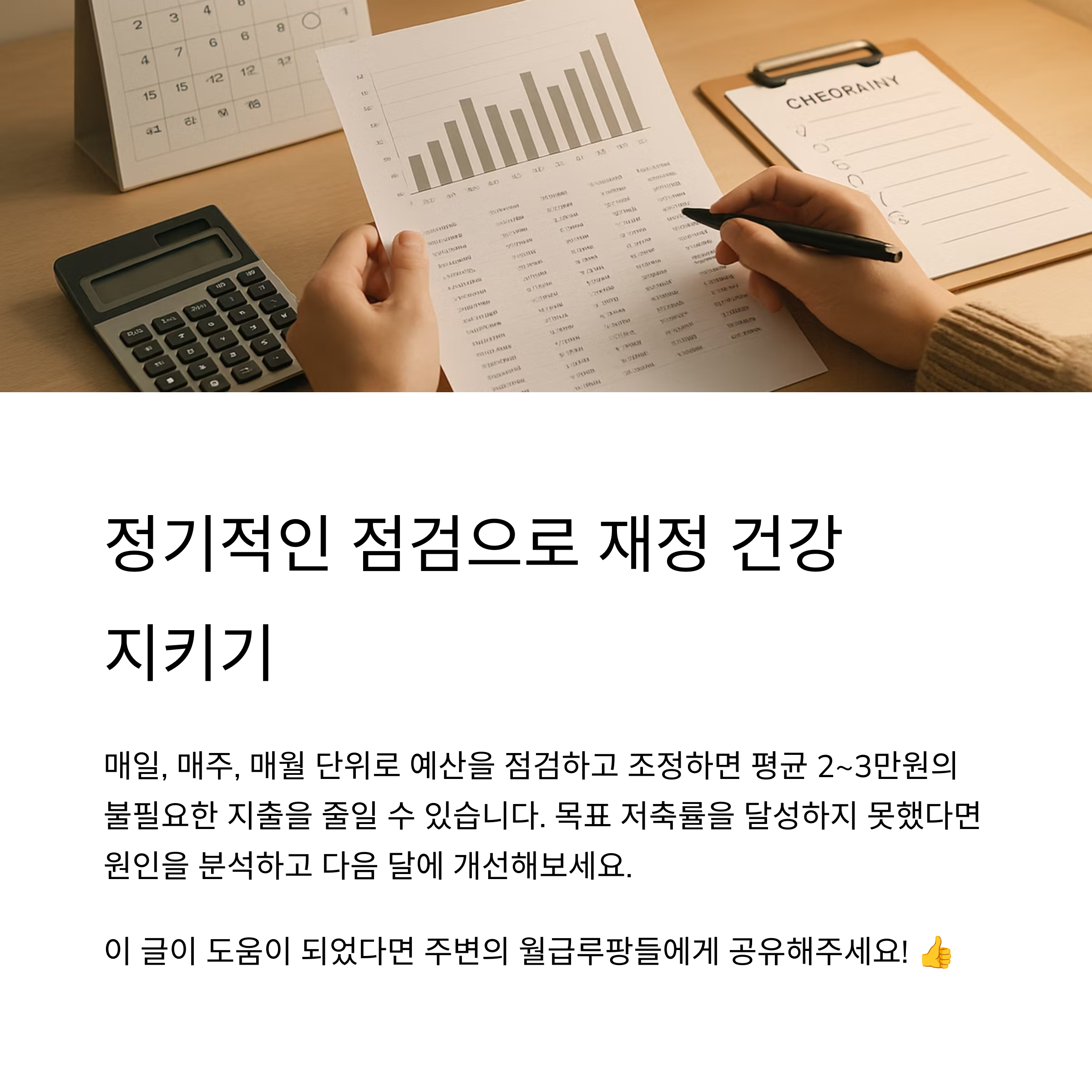 한 달에 한 번, 예산 사용 현황을 꼭 점검하세요! 예산을 초과한 부분은 왜 그런지 분석하고, 다음 달에 조정하는 것, 정말 중요해요. 완벽하게 지키려고 스트레스 받기보단, '조금씩 나아진다'는 마음으로 접근해보세요. 🌟