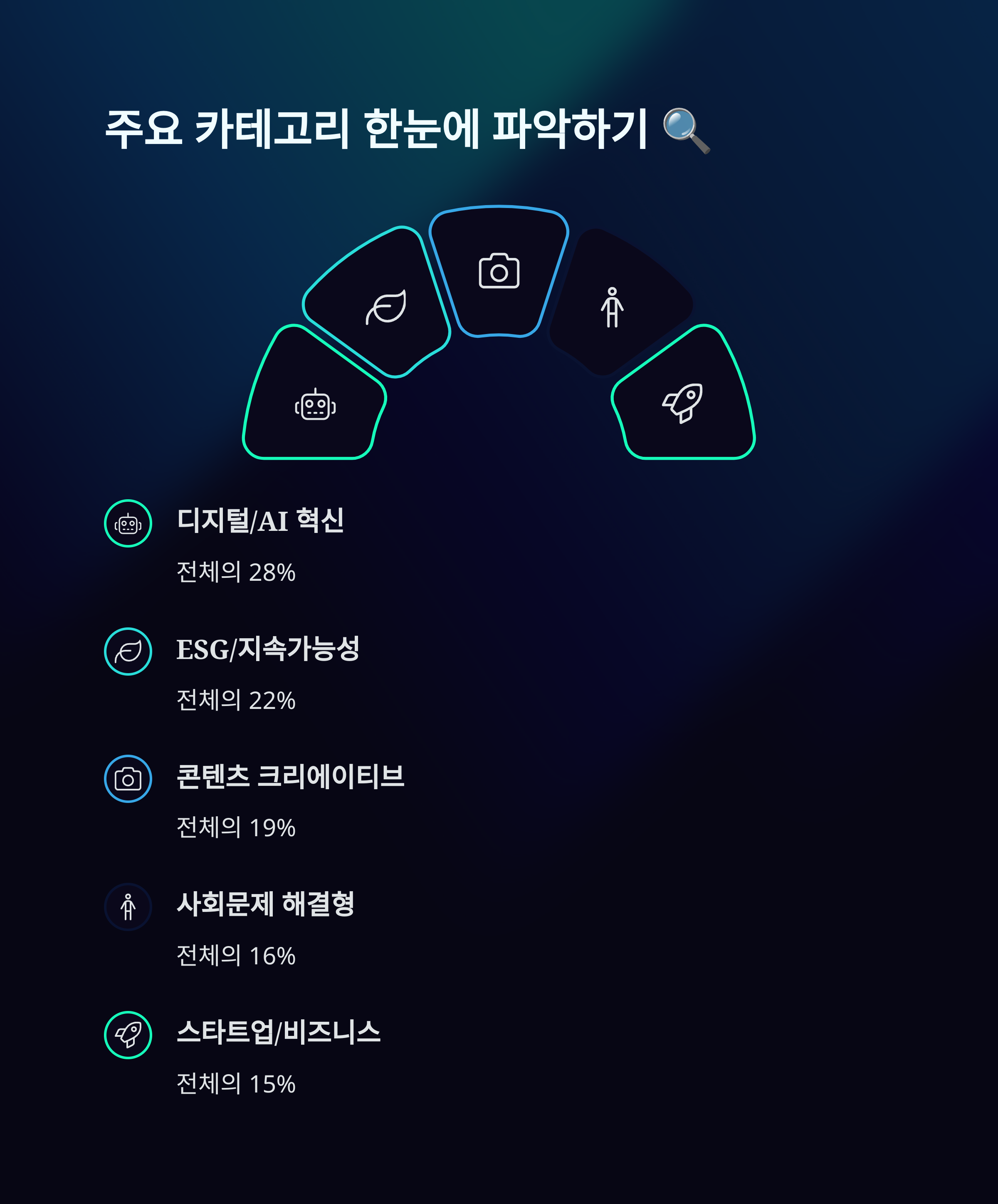 2025년 공모전은 다음과 같은 5가지 카테고리로 분류할 수 있어요: